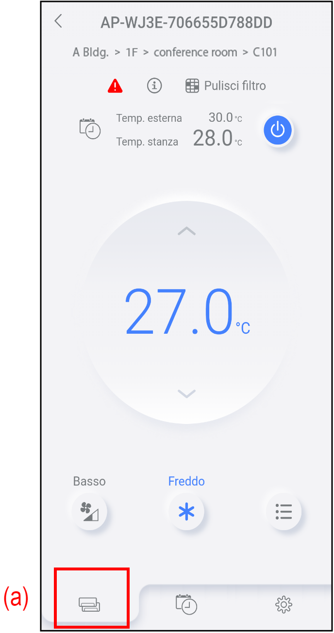 È possibile utilizzare le funzioni di base dei condizionatori d’aria dalla scheda condizionatore d’aria (a) ([