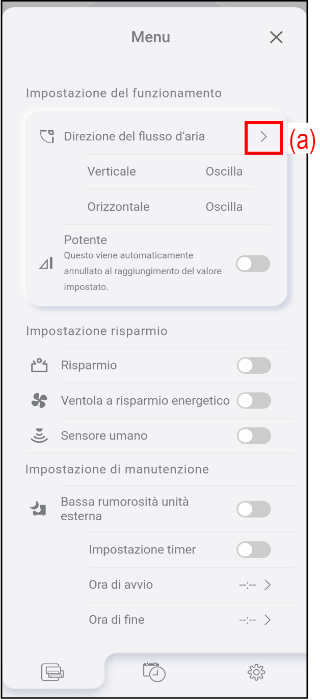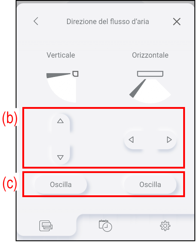 Toccare (a) per regolare la direzione del flusso d’aria verso l’alto/il basso o verso sinistra/destra.