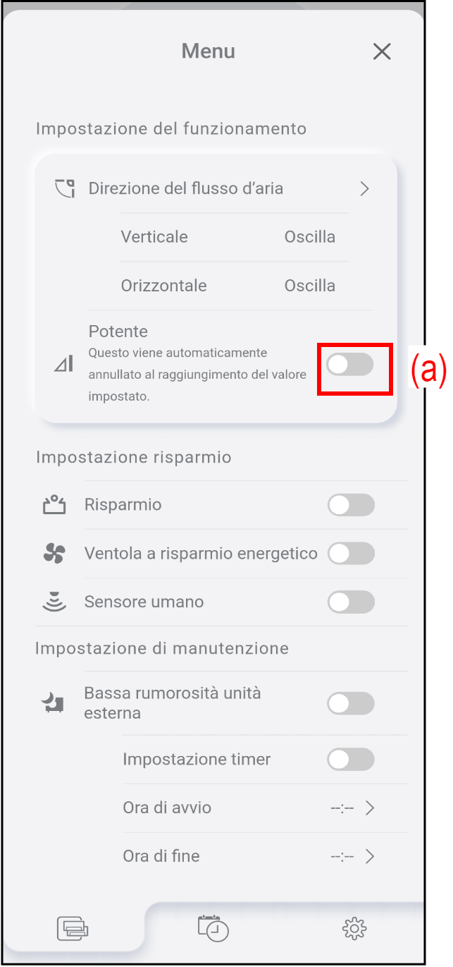 Toccare (a) per avviare/arrestare il funzionamento Potente.