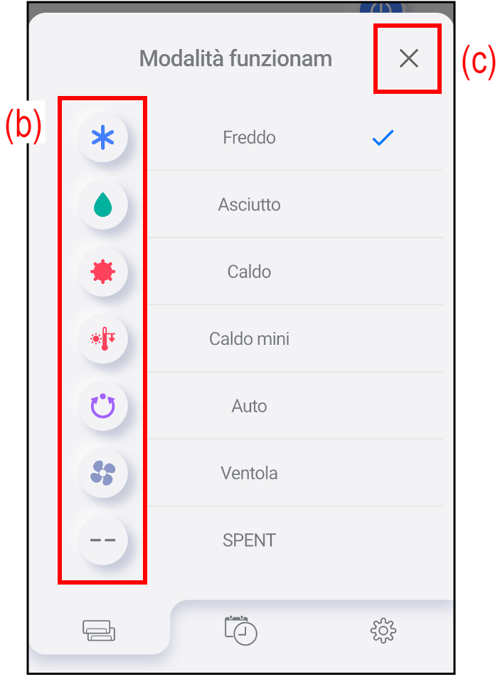 Toccare l’icona (b) della modalità di funzionamento desiderata.