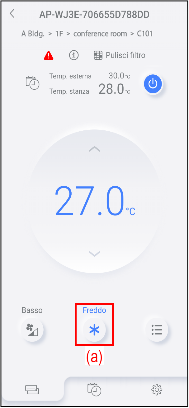 Per modificare la modalità funzionamento, toccare il pulsante (a).