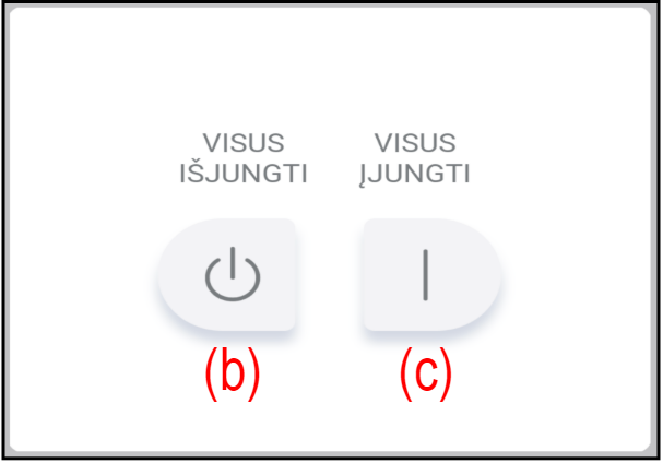 Norėdami paleisti visų oro kondicionierių veikimą, bakstelėkite mygtuką (c).