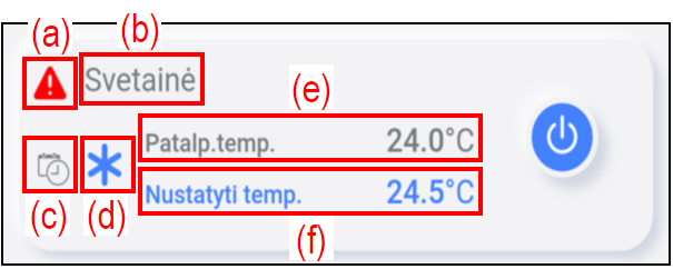 | (c) | Laikmačio piktograma | Parodo, kad laikmatis nustatytas iš mobiliosios programėlės. |