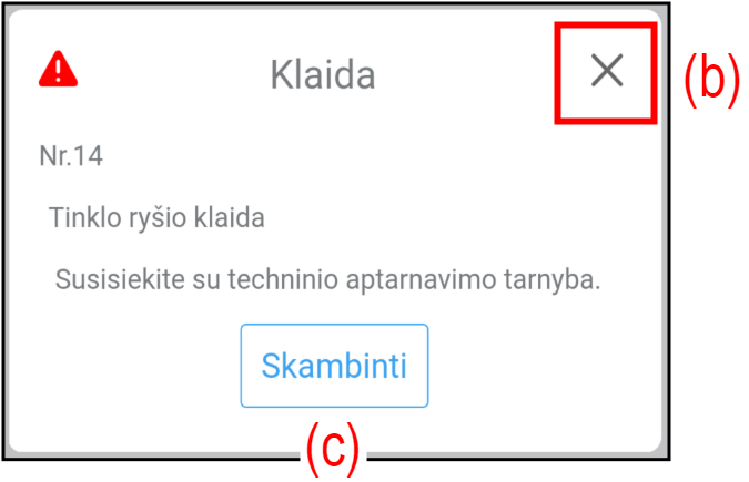 Jeigu rodomas klaidos pranešimas, būtinai vykdykite ekrane pateikiamus nurodymus. |