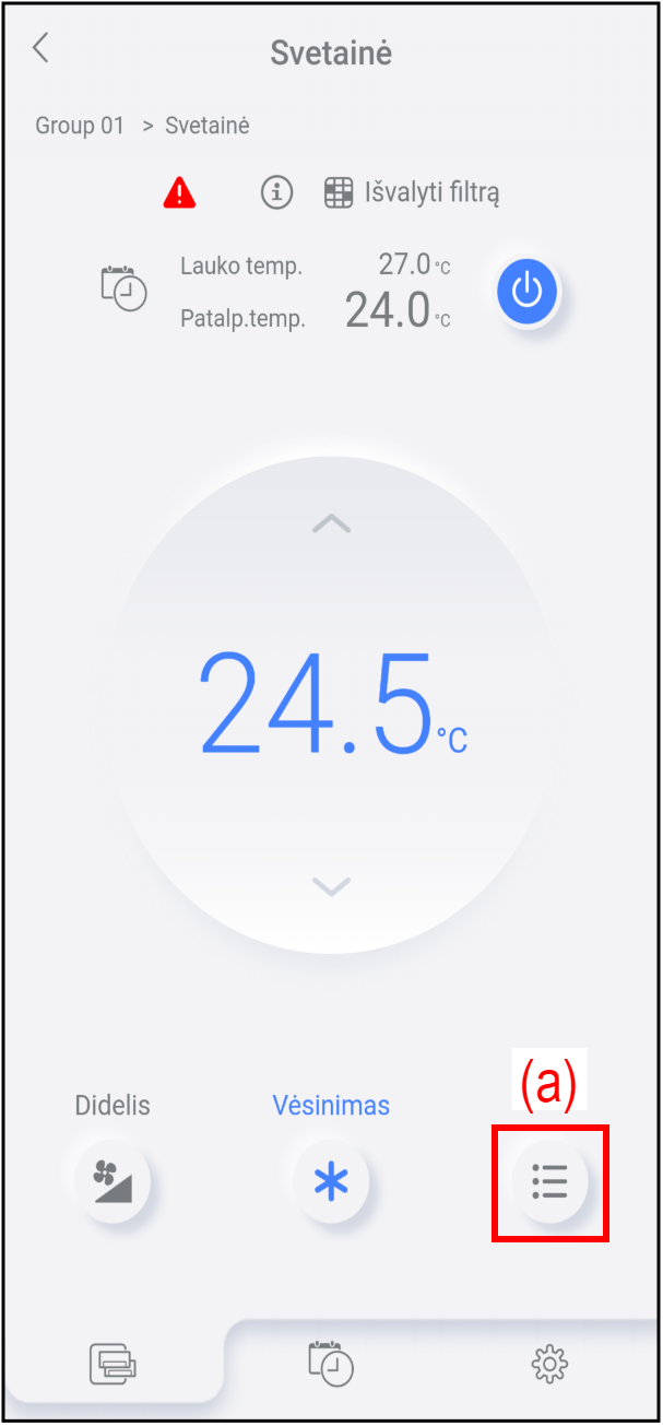 Atskiro oro kondicionieriaus ekrane galite keisti veikimo nustatymus ir naudoti įvairias funkcijas.