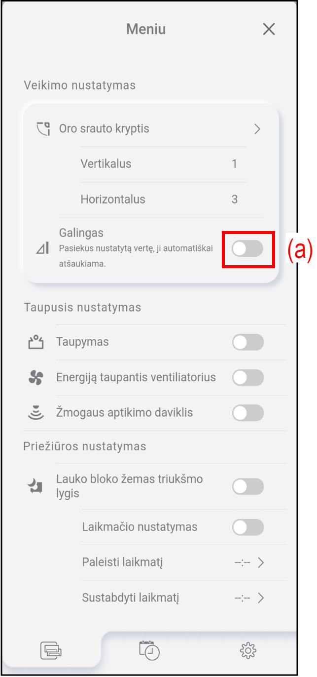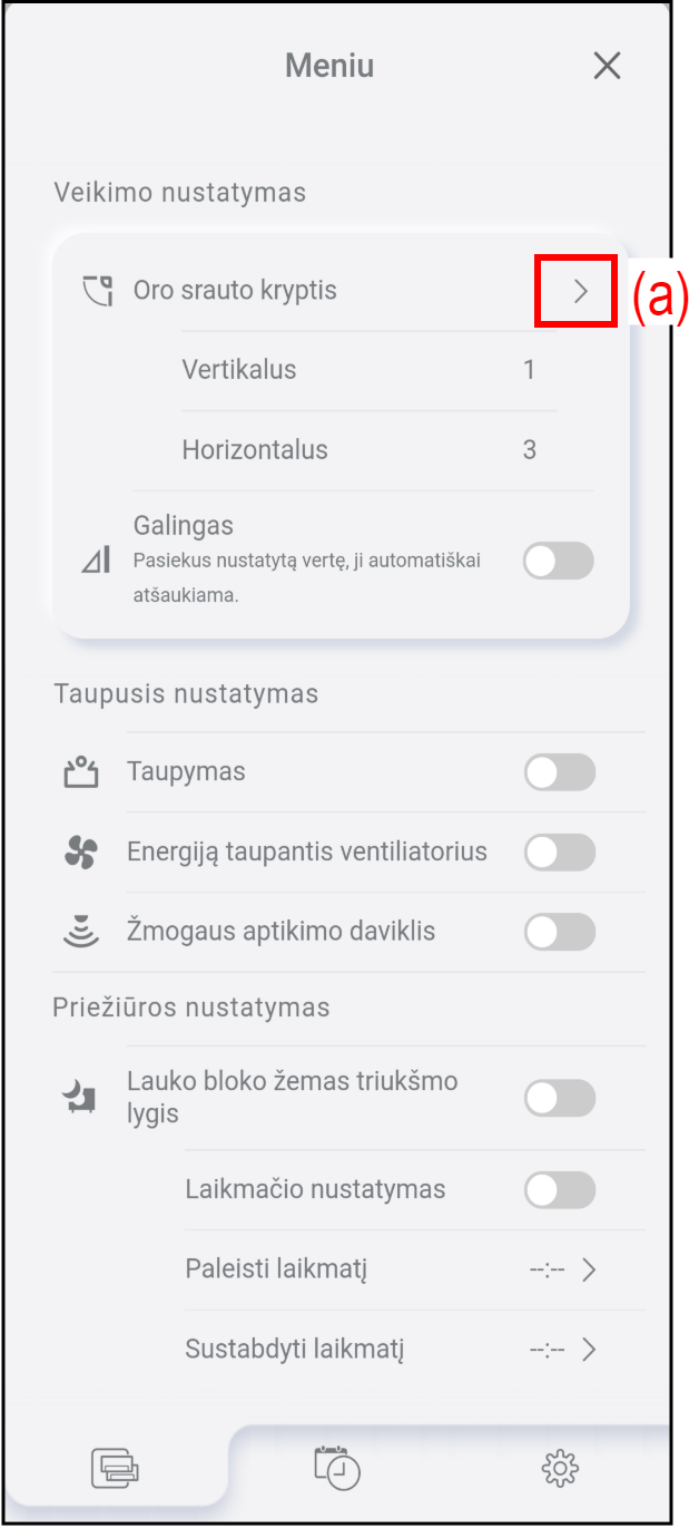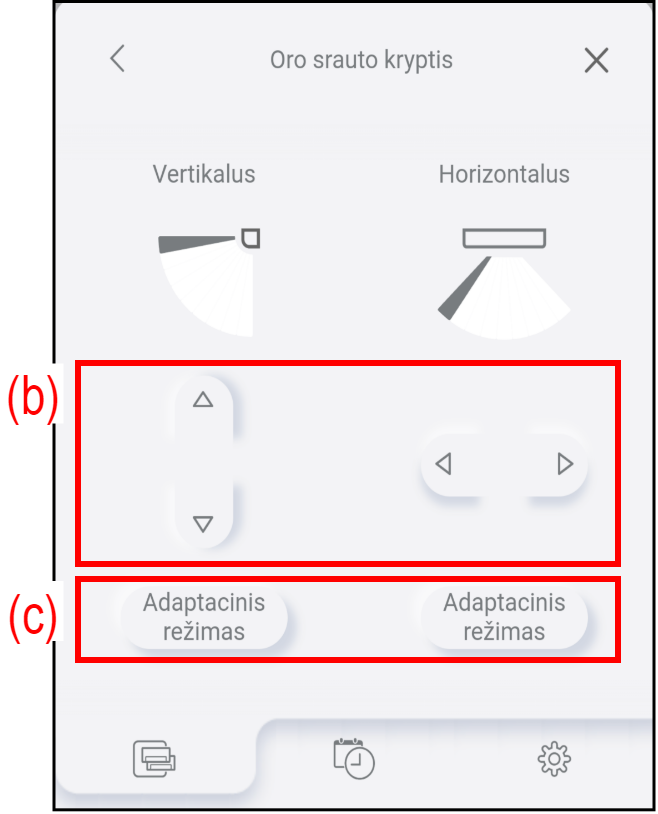 Norėdami sureguliuoti oro srauto kryptį, bakstelėkite (b).