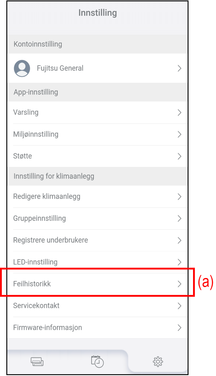 - Trykk på (a) på «Innstilling»-skjermen for å sjekke feilhistorikken.