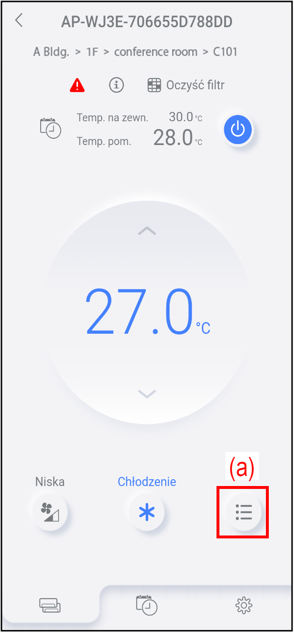 Na ekranie pojedynczego klimatyzatora można zmieniać ustawienia eksploatacyjne i włączać różne funkcje.