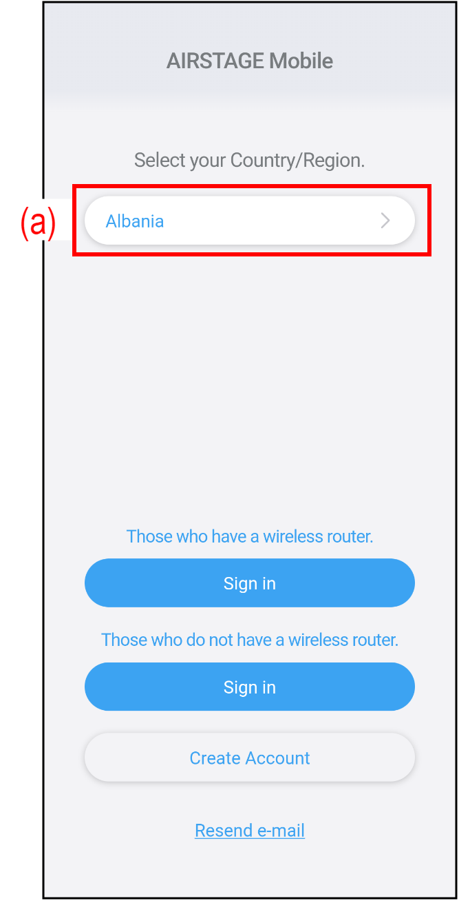 - Dacă nu aveți un cont AIRSTAGE Mobile, creați un cont nou conform „Crearea contului”.