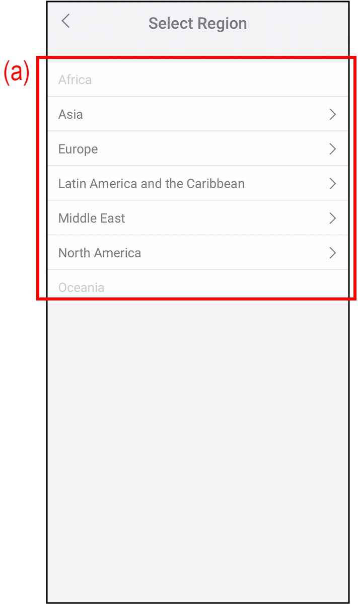 Se afișează ecranul „Select Region”. - Selectați regiunea dvs. din listă (a).