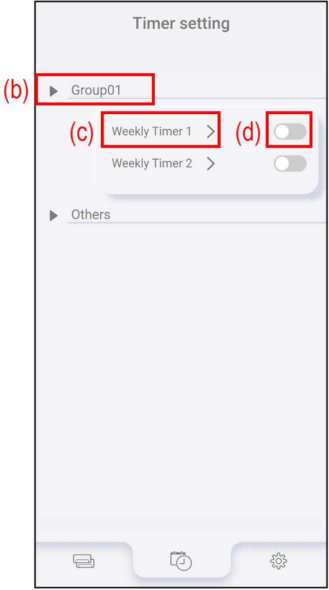 Atingeți (b) pentru a verifica sau edita setarea temporizatorului Weekly. Consultați „Procedura setării temporizatorului” pentru detalii.