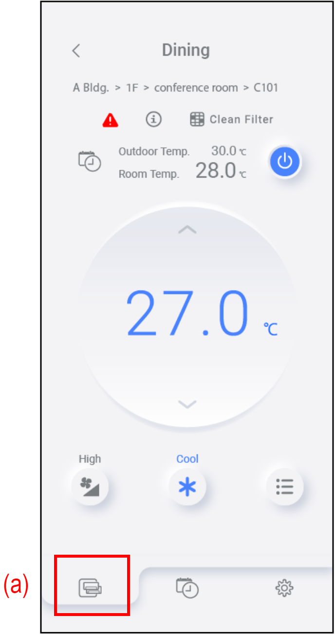 Puteți utiliza funcțiile de bază ale aparatelor de aer condiționat din fila Air conditioner (a) ([