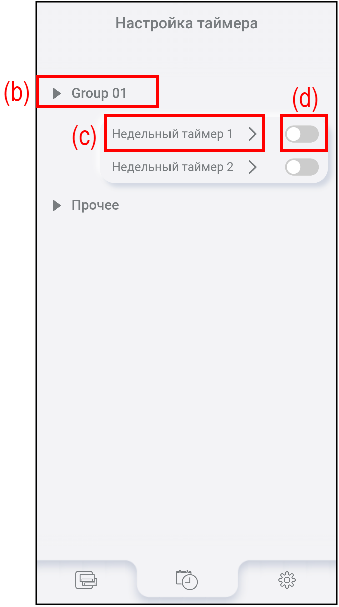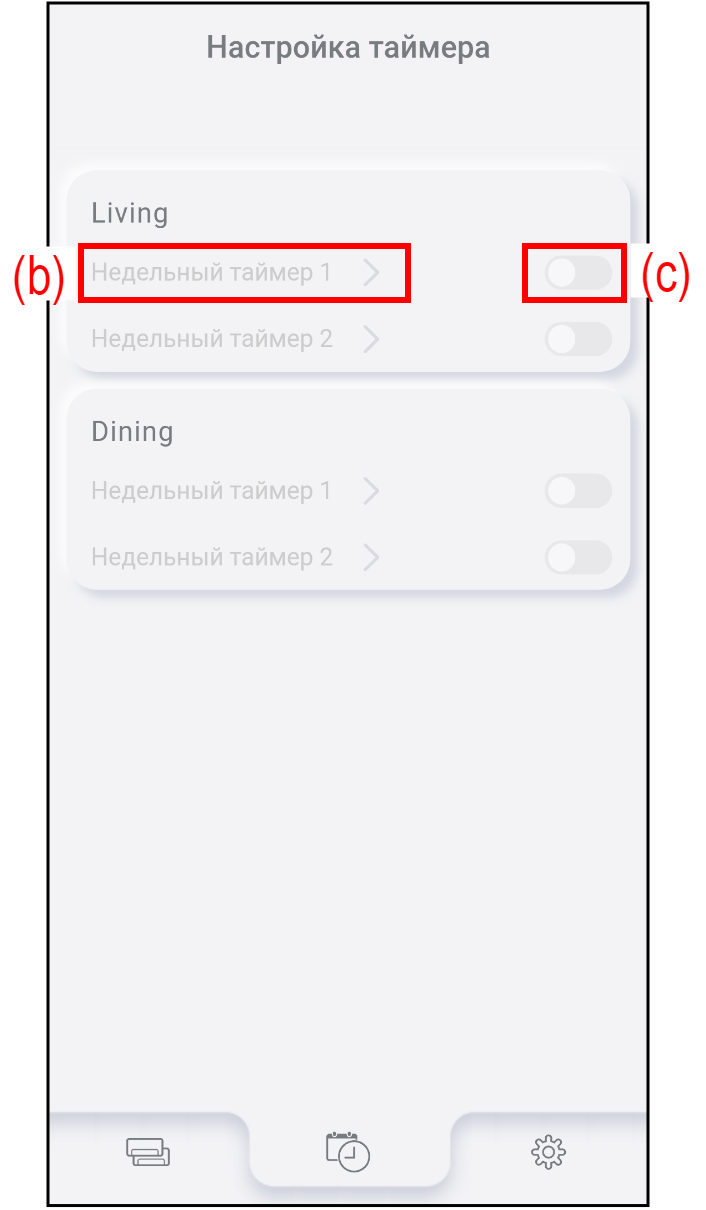 Нажмите (b), чтобы посмотреть или изменить настройки недельного таймера. Подробнее см. в разделе «Процедура настройки таймера».