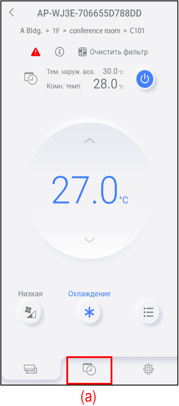 Недельный таймер можно задать для каждого кондиционера воздуха, нажав на его имени.