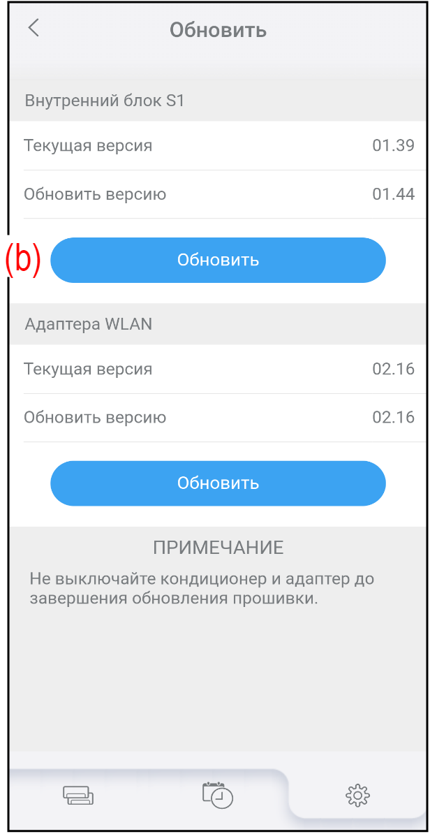 Прошивку внутреннего блока и адаптера WLAN можно выполнить вручную.