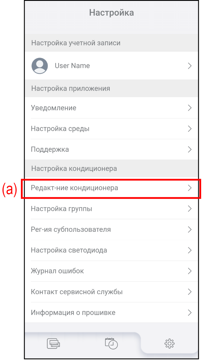 - Нажмите кондиционер воздуха (b), чтобы изменить его имя или удалить.