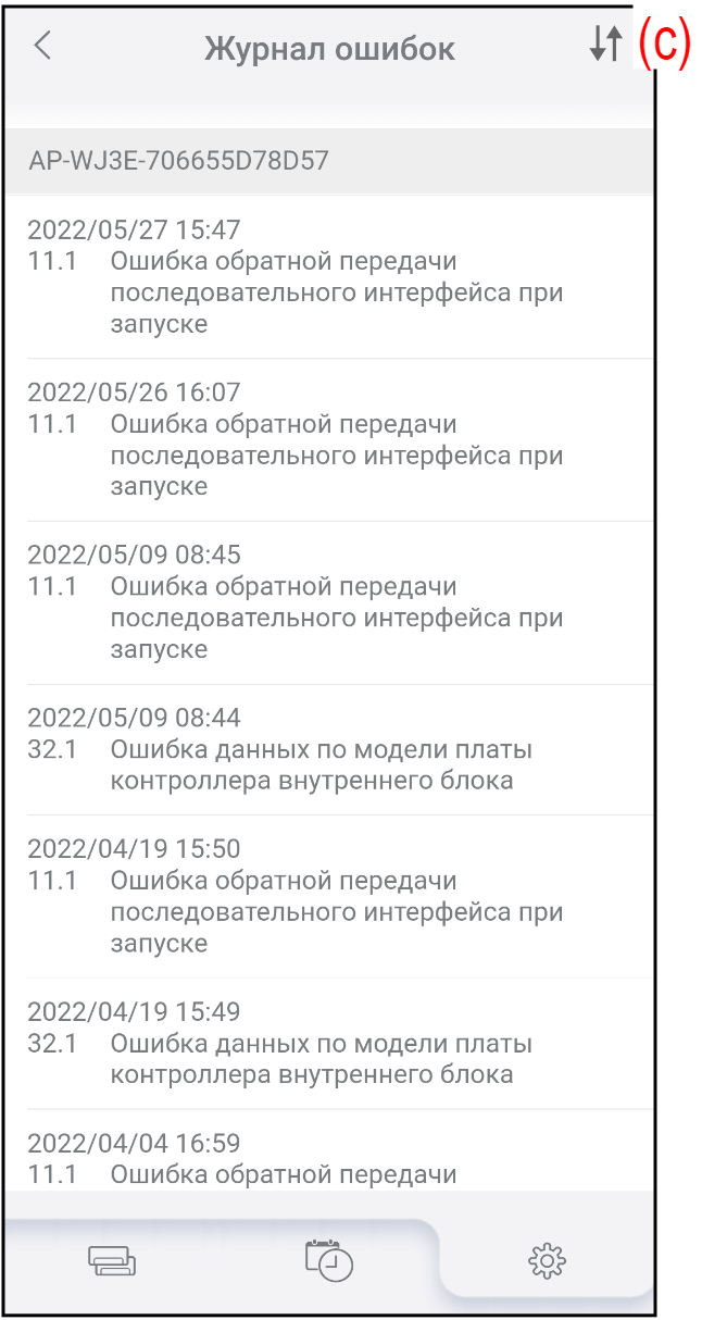 - Нажмите (b), чтобы выбрать кондиционер и просмотреть историю ошибок.