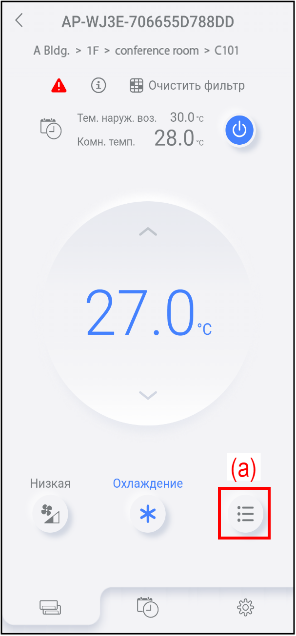 Вы можете изменять параметры работы и использовать различные функции с экране отдельного кондиционера.