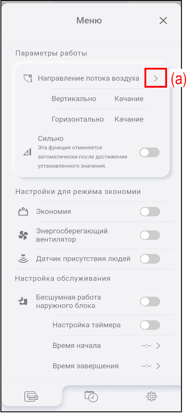 Нажимайте (a) для регулировки направления потока воздуха вверх/вниз или влево/вправо.