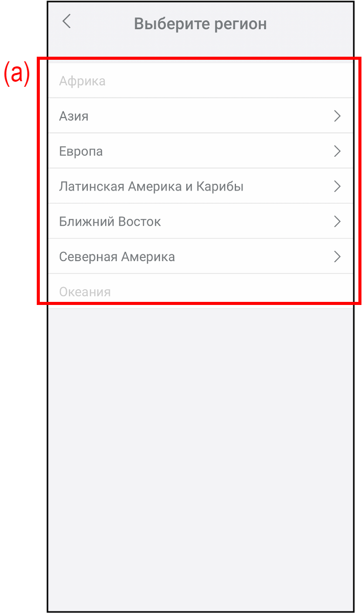 Отобразится экран «Выбрать регион». - Выберите свой регион из списка (a).