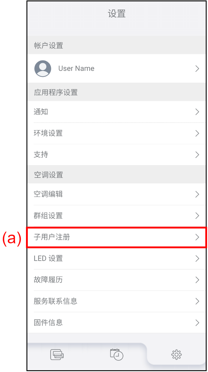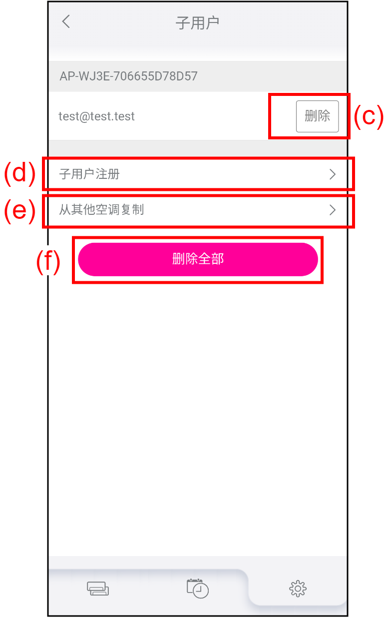 可以注册或删除可操作空调的子用户。
