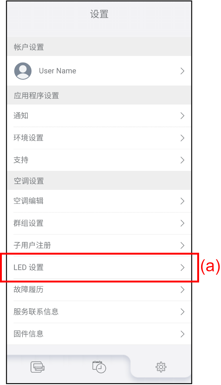 1. 轻按“设置”画面上的(a)以更改LED设置。