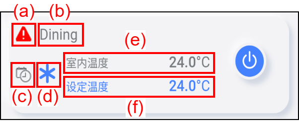| (e) | 室内温度 | 显示当前室内温度。 |