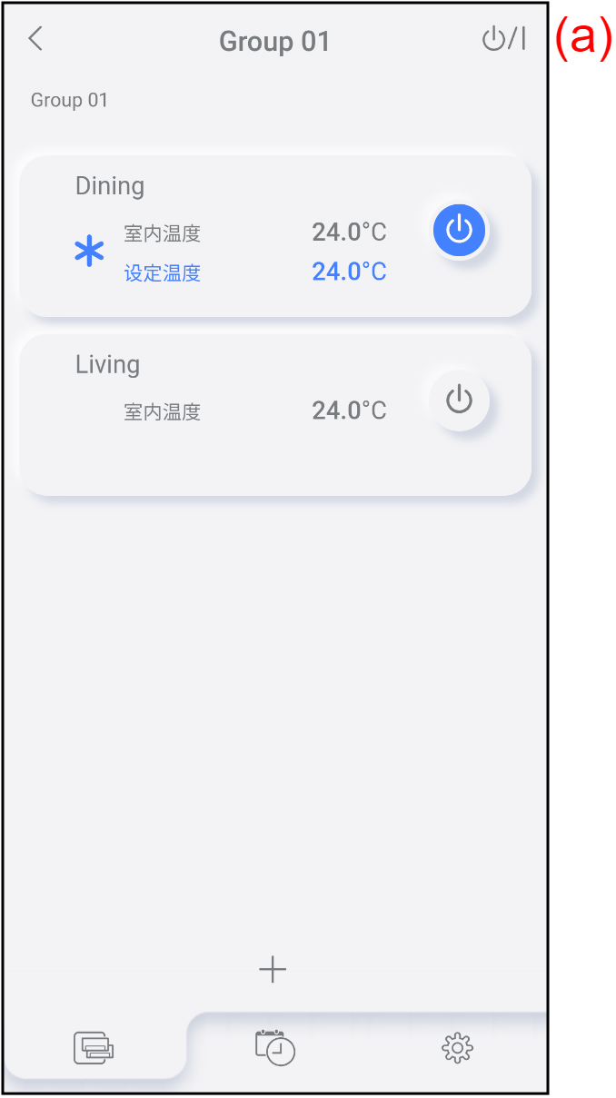 轻按(b)以开始/停止群组中所有空调的运行。参考以下“全部开始/停止运行”了解详情。