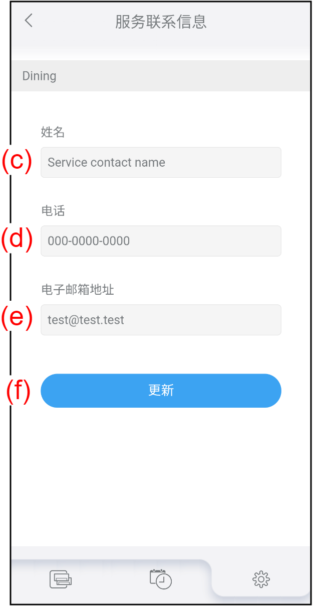 3. 在(c)到(e)中输入有关服务联系信息的信息。