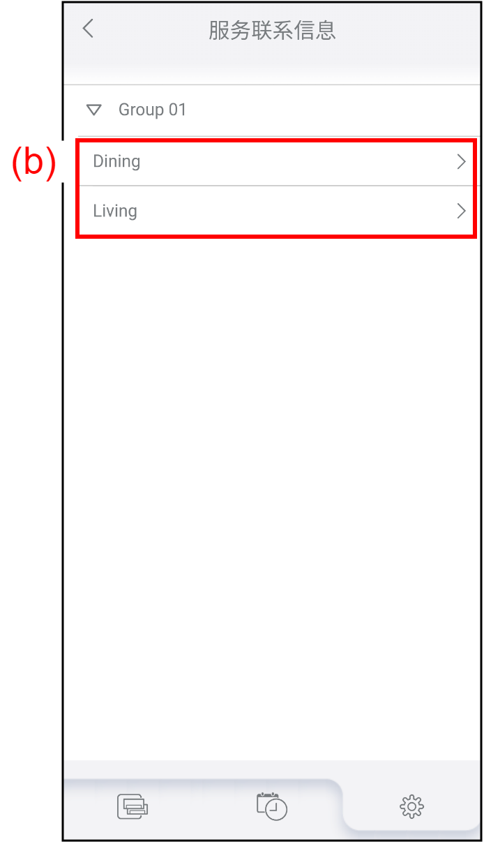 2. 轻按(b)选择空调以检查或编辑有关服务联系信息的信息。