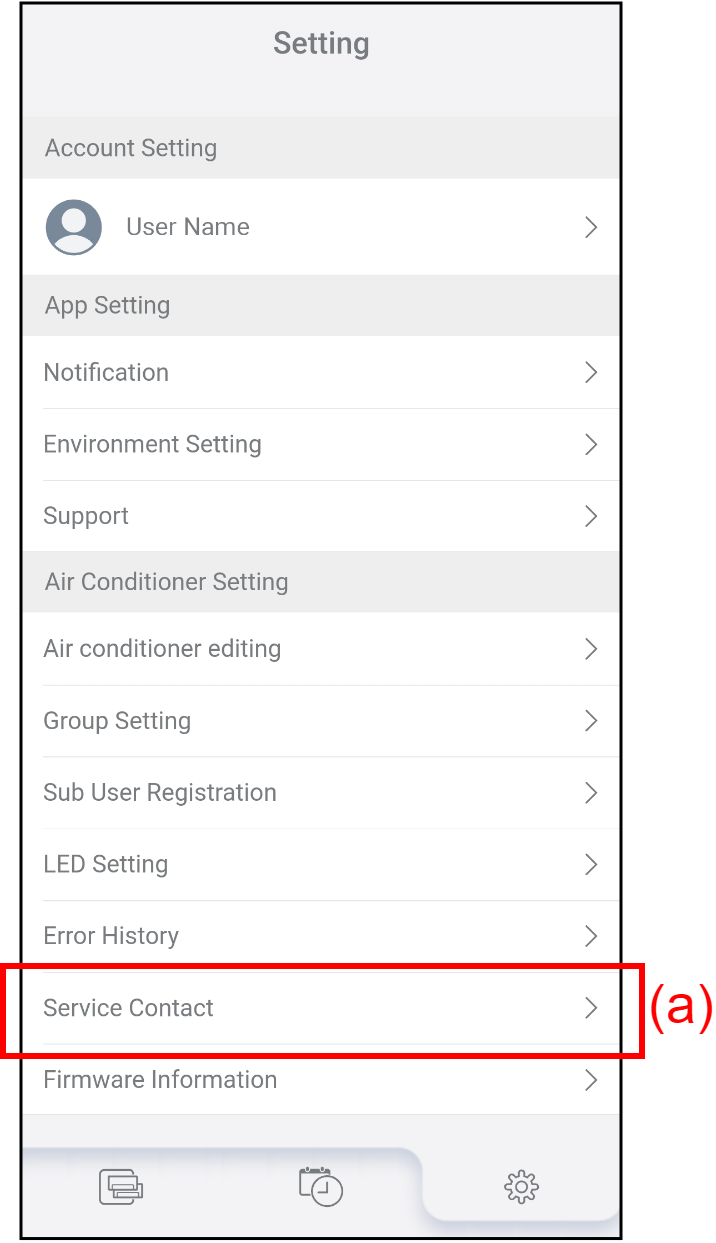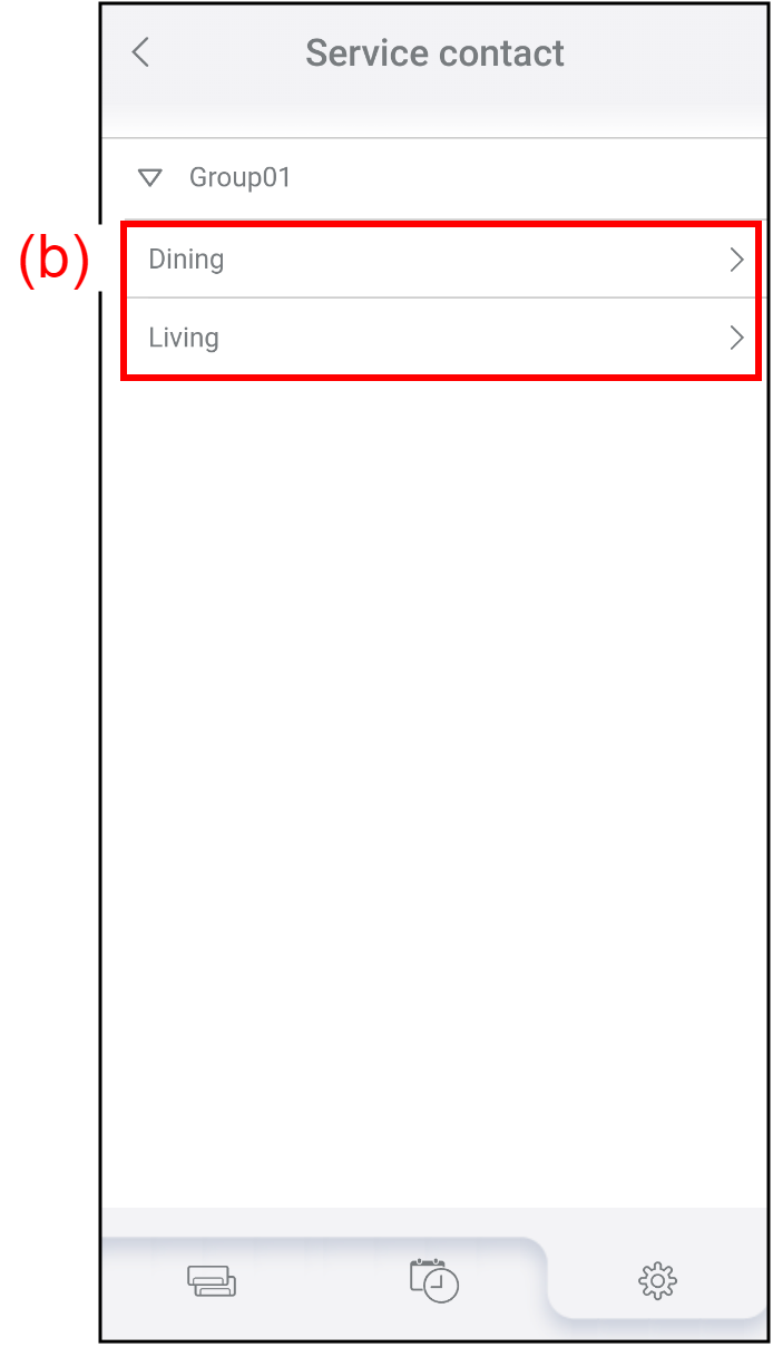 - Dotaknite se (b), da izberete klimatsko napravo, za katero želite preveriti ali urediti podatke kontakta servisa.