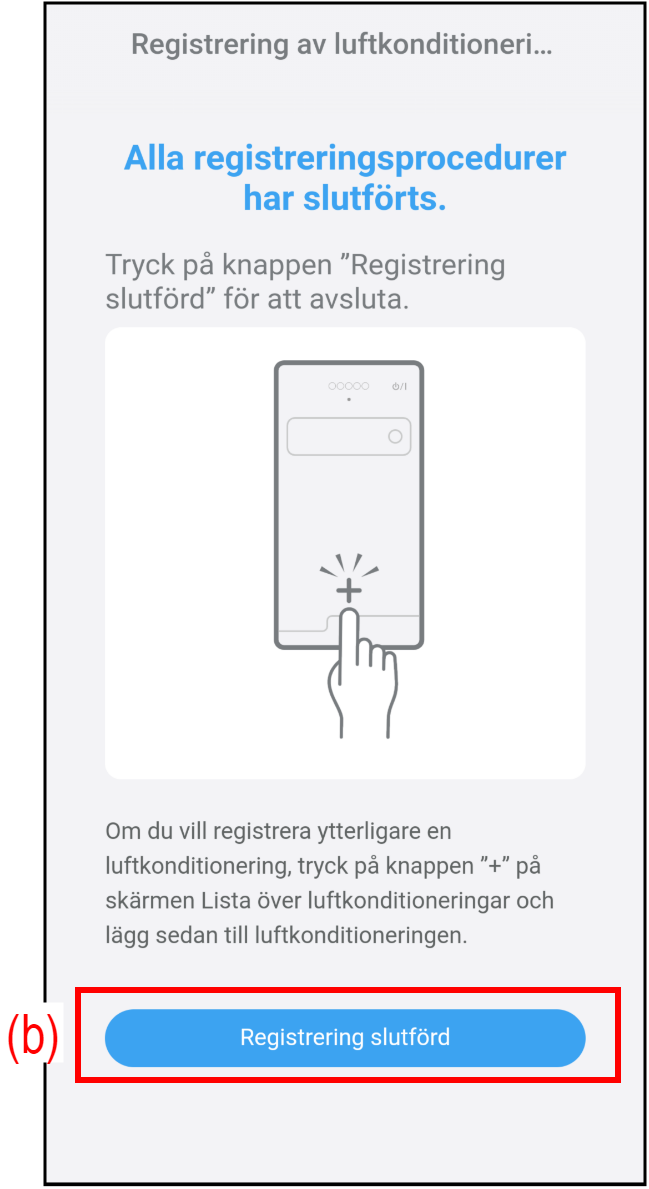 - Tryck på (a) för att registrera en ny luftkonditioneringsapparat i appen.