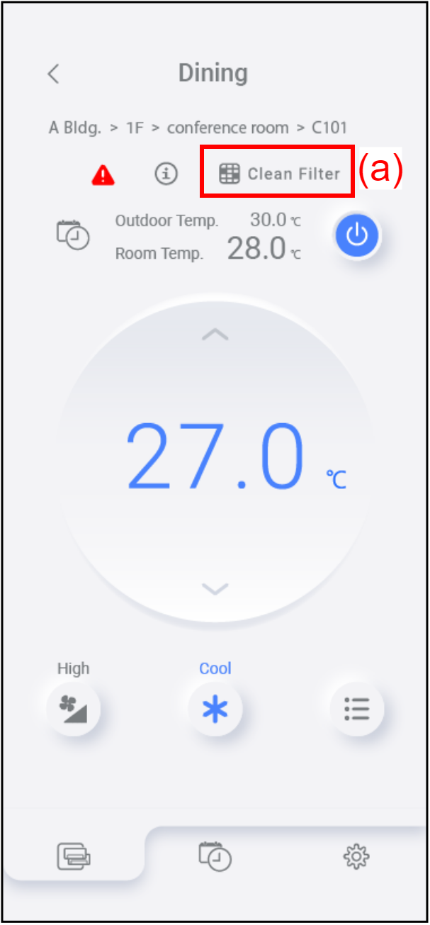 ทำความสะอาดแผ่นกรองของเครื่องปรับอากาศ จากนั้นแตะ [OK]