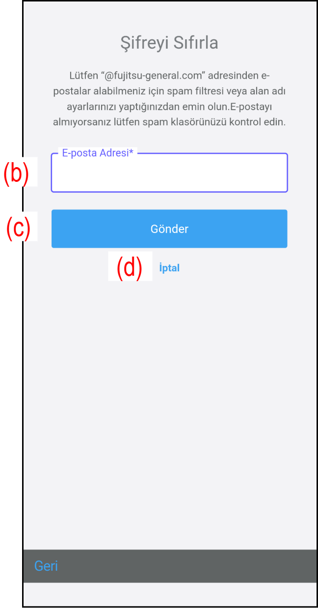 - Şifrenizi unutursanız, "Giriş" ekranındaki (a) düğmesine basın.