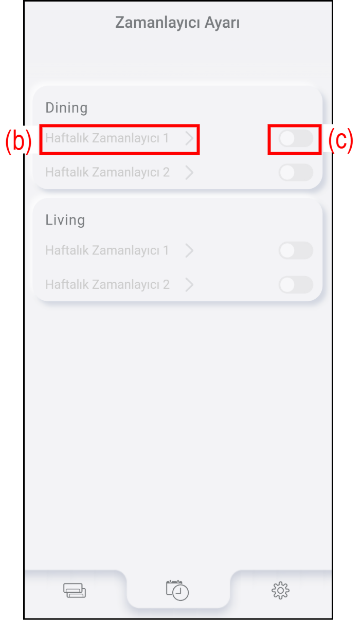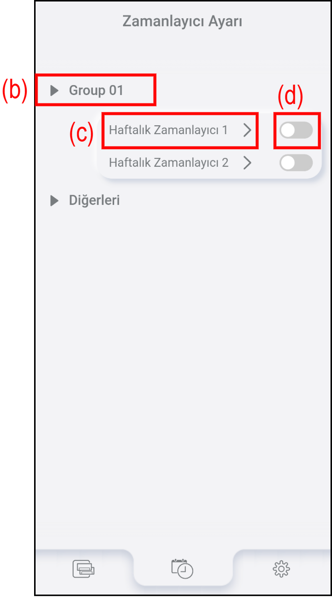 Haftalık zamanlayıcıyı etkinleştirmek/devre dışı bırakmak için (c) düğmesine basın.