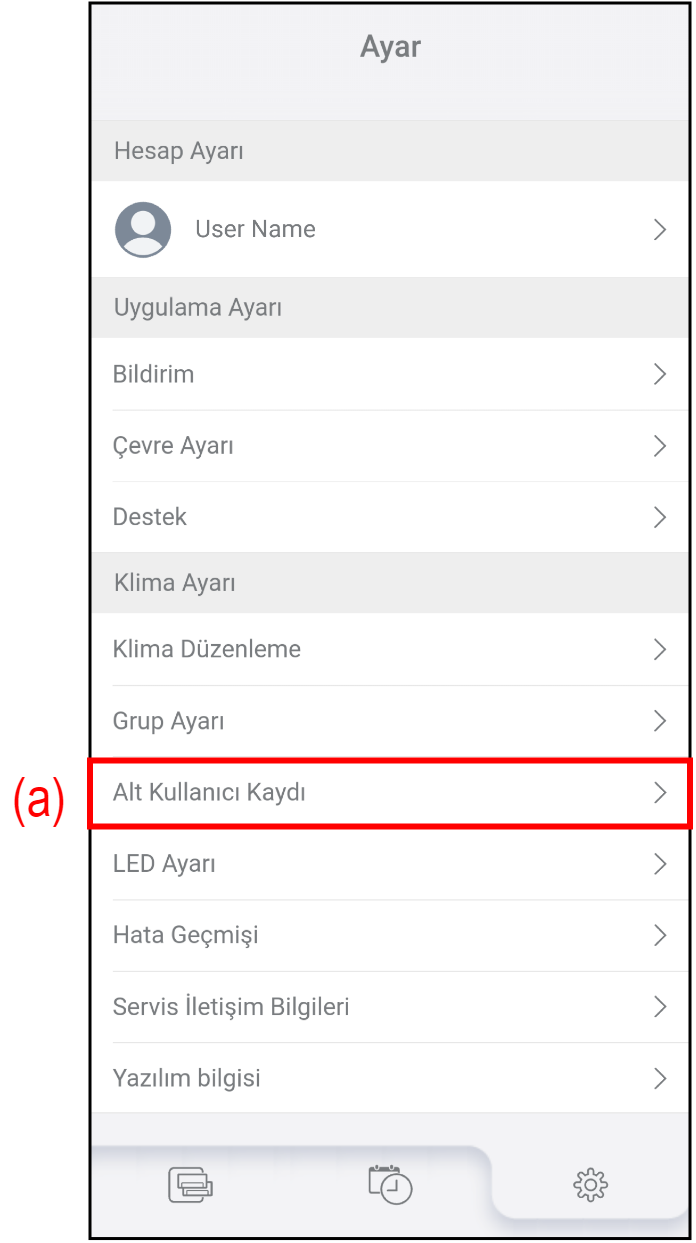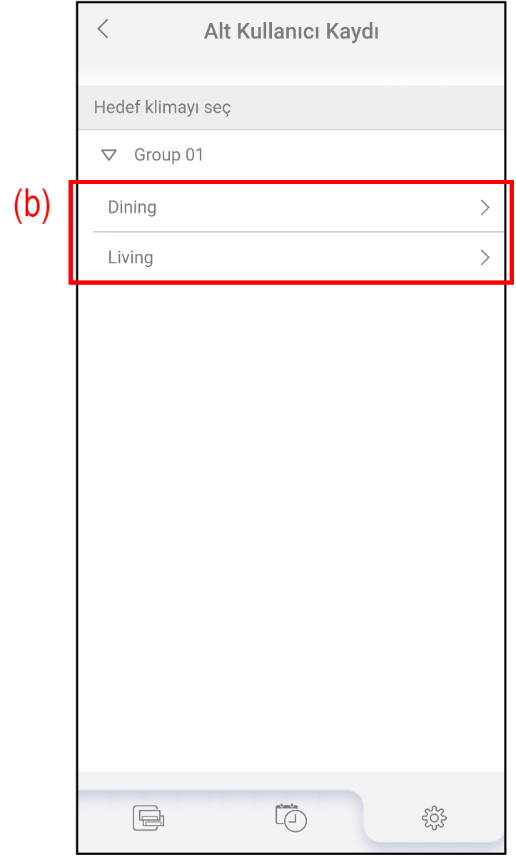 Alt kullanıcıyı eklemek veya silmek istediğiniz klimayı seçmek için (b) düğmesine basın.