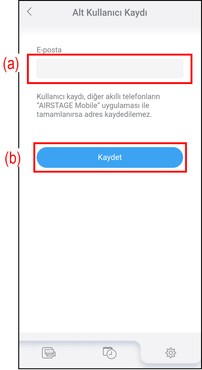 - Alt kullanıcının e-posta adresini, "Alt Kullanıcı Kaydı" ekranındaki (a) alanına girin.