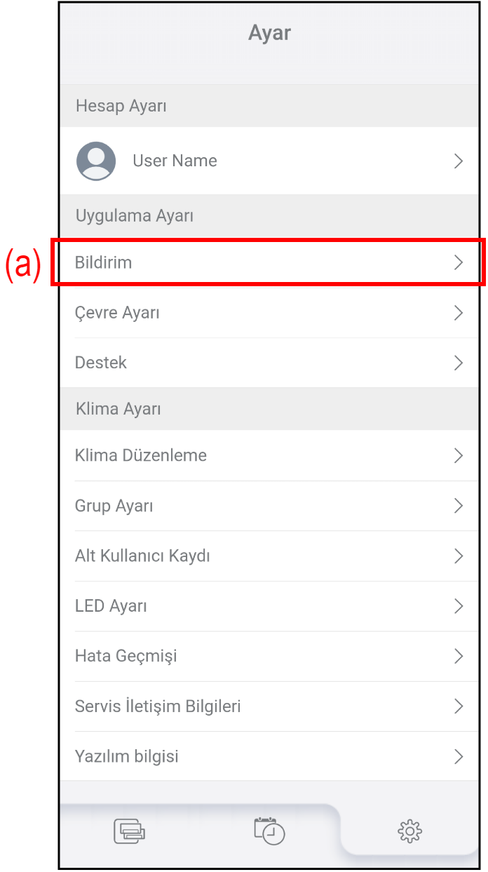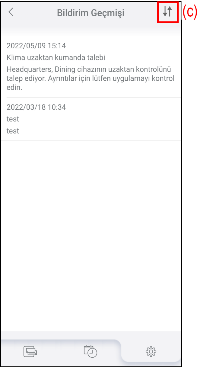 Geçmişteki bildirimleri kontrol etmek için "Ayar" ekranındaki (a) düğmesine basın.