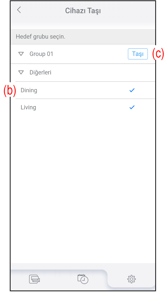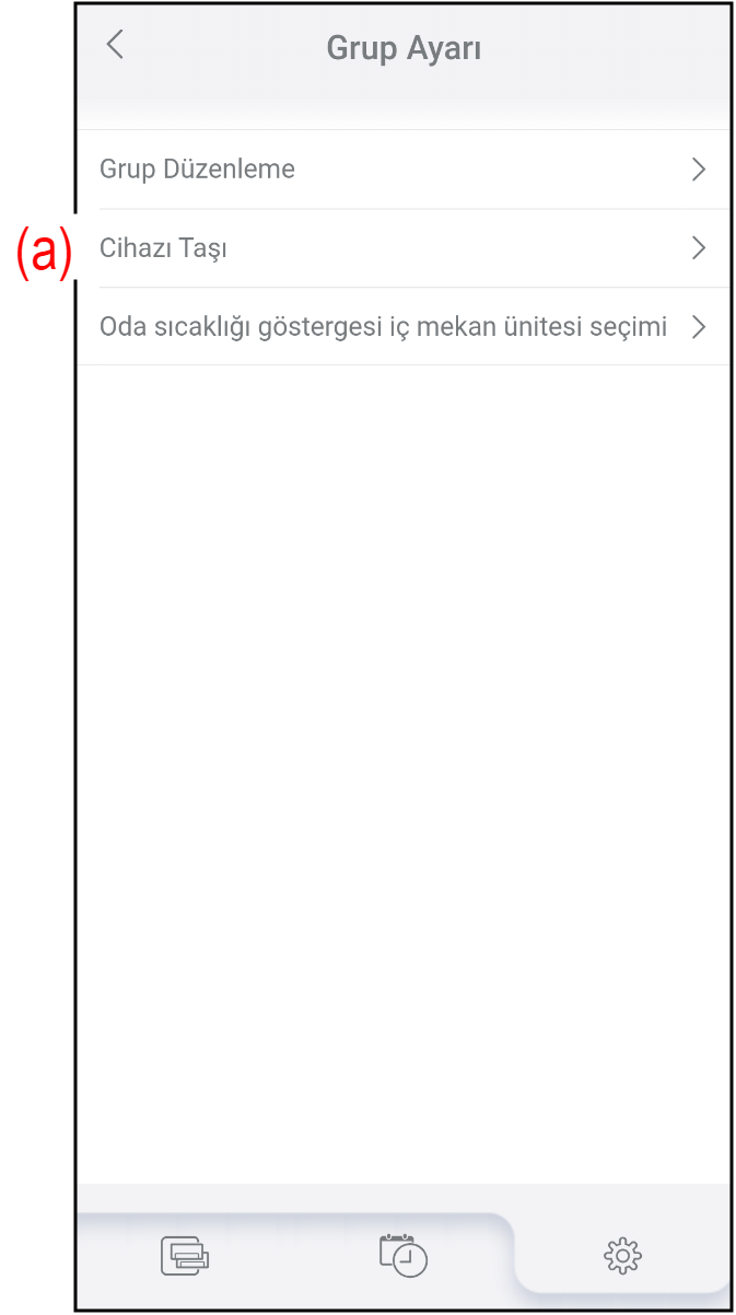 - Klimayı başka bir gruba taşımak için "Grup Ayarı" ekranındaki (a) düğmesine basın.