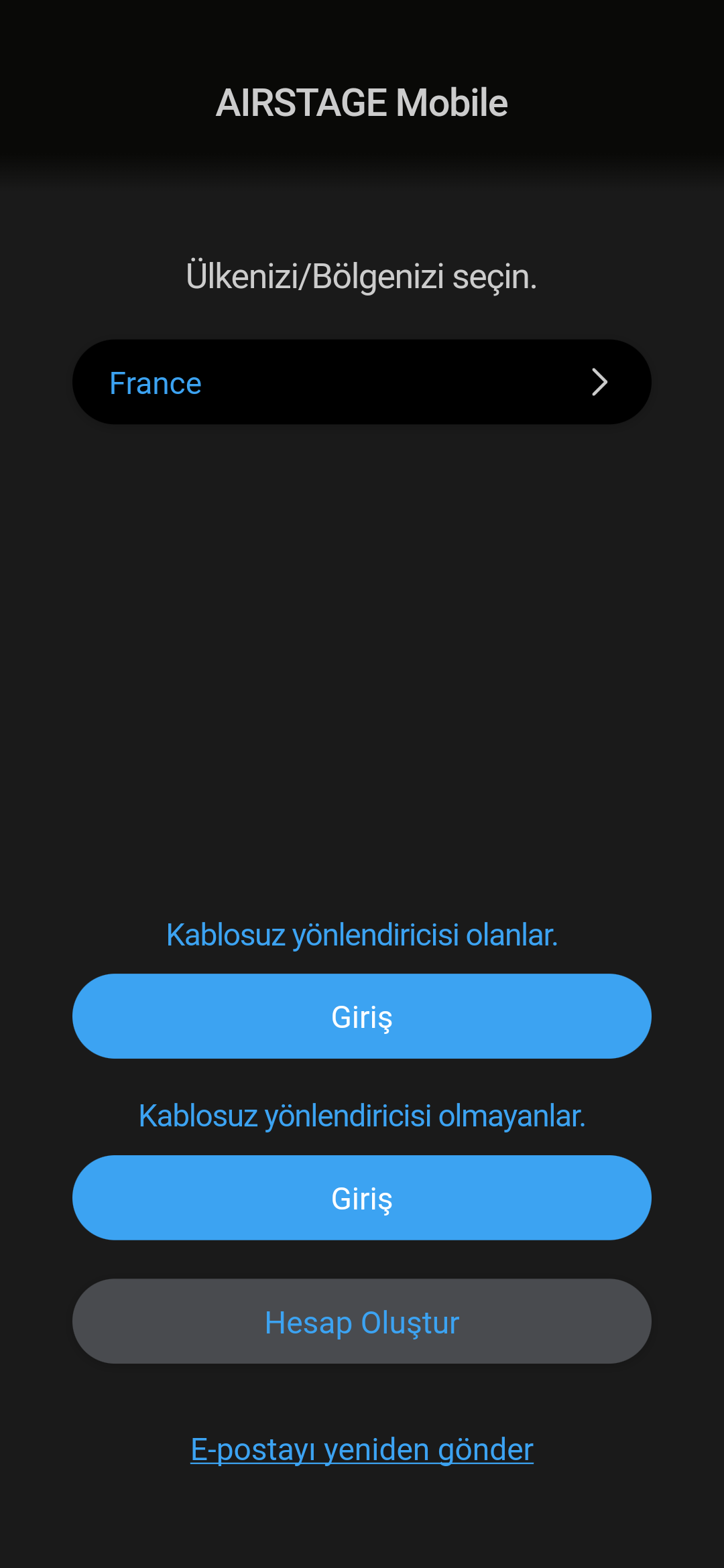 AIRSTAGE Mobile uygulaması karanlık modu (*1) destekler. Ekran, akıllı telefonunuzla birlikte otomatik olarak karanlık moda geçer.