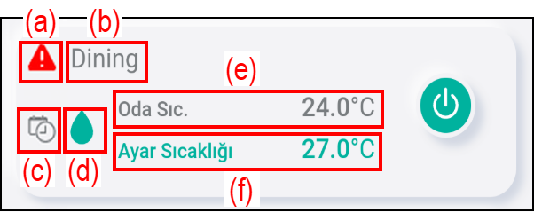 | (c) | Zamanlayıcı simgesi | Zamanlayıcının mobil uygulamadan ayarlandığını gösterir. |