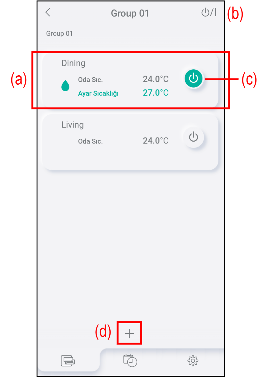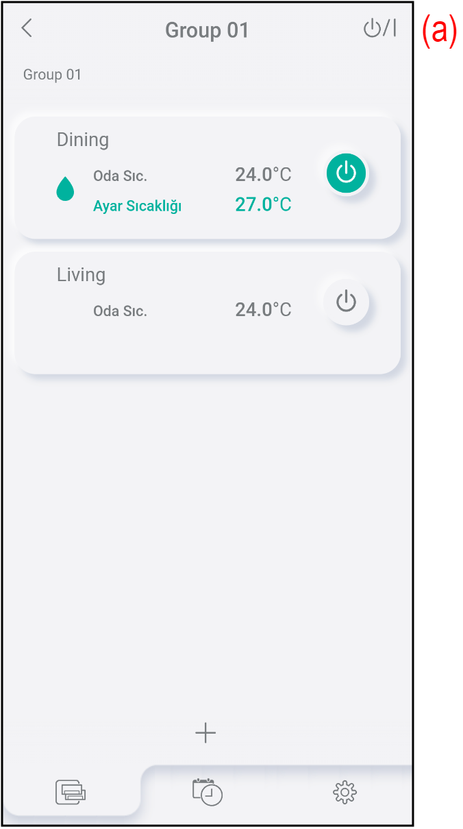 Gruptaki her klimanın çalışmasını başlatmak/durdurmak için (c) düğmesine basın.