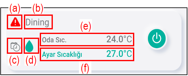 | (e) | Oda Sıc. | O sıradaki oda sıcaklığını gösterir. |
