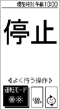 を押すと、設定箇所を移動できます。- 時刻が設定され、運転停止画面が表示されます。