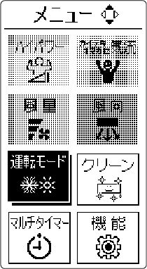 HOME 基本の使いかた 運転する(送風運転) 詳しい機能の働きを知りたい方はこちら操作のしかた を押す。メニュー画面が表示されます で を選び を押す で「送風」を選び を押す で運転を停止する。詳しい機能の働き送風運転についてお部屋の空気を循環させたいときや、風に当たりたいときなどにお使いください。サーキュレーターと同様にお部屋の中の空気を循環させることができます。風が遠くまで届くので、お部屋の空気の温度ムラを効率よく解消させることができます。送風中に窓を開けて換気をすると、室内にこもっている熱気を逃すことにも利用できます。吹出し方向を変えることができるので、扇風機のように風に当たることもできます。