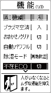 ▶ "不在 ECO"が働く設定は、「切」に設定するまで有効です。