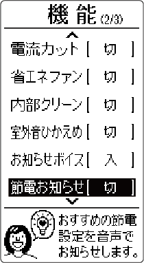 エアコンの運転状態やお部屋の状況によって、節電につながる情報をお知らせします。また、運転停止時に今日の電気代をお知らせします。