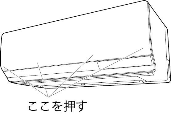 吸込グリルを閉じる 吸込グリル下側の両端・中央部(4 ヶ所)を押して閉めます。