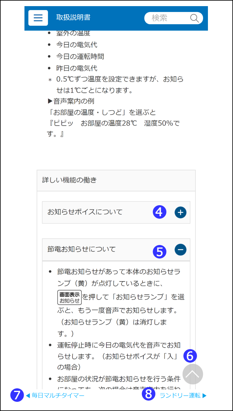 もくじの一覧が表示されます。(本取扱説明書をスマートフォンで閲覧する場合、アイコンをタップすると表示されます。)