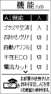 | プラズマ空清 | 【設定項目】 入★ / 切 |